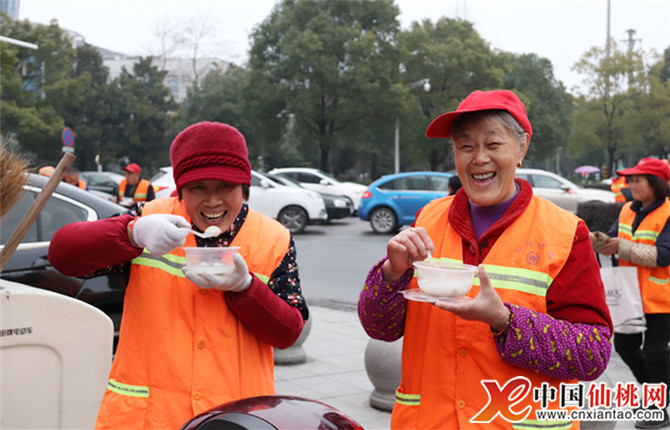 一顆顆甜糯的湯圓、一碗碗冒著熱氣的糖水,讓環(huán)衛(wèi)工人們身心暖和,綻放出一張張幸福滿足的笑臉,更吸引不少路過市民駐足了解,向他們致以節(jié)日的祝福。
